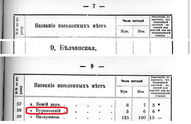 станції і був відомий як хутір Бураківської Більчанської волості. У цьому списку