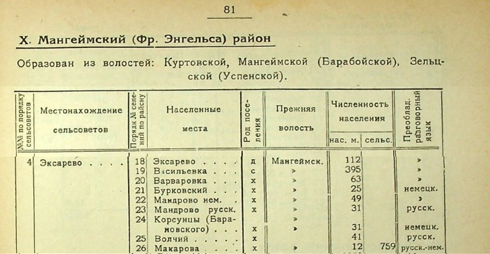 Мангеймської волості [6], яка згодом була переіменована у Барабойську (див. Додаток - 1917 рік).