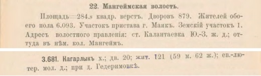1896 г. – хутор Кагарлык относится к Мангеймской волости [9].