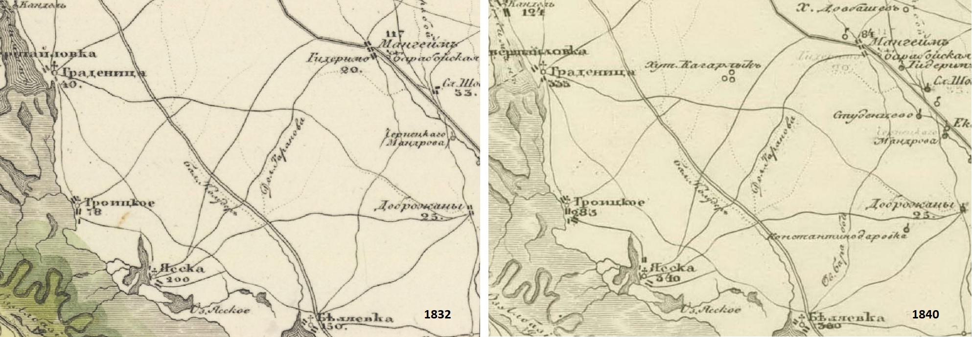 1809 гг. Как видно из рис.2 – наиболее вероятно территория хутора будет