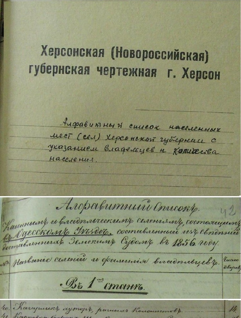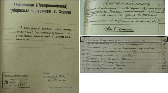 «Поселення Херсонської губернії за повітовими алфавітами 1856