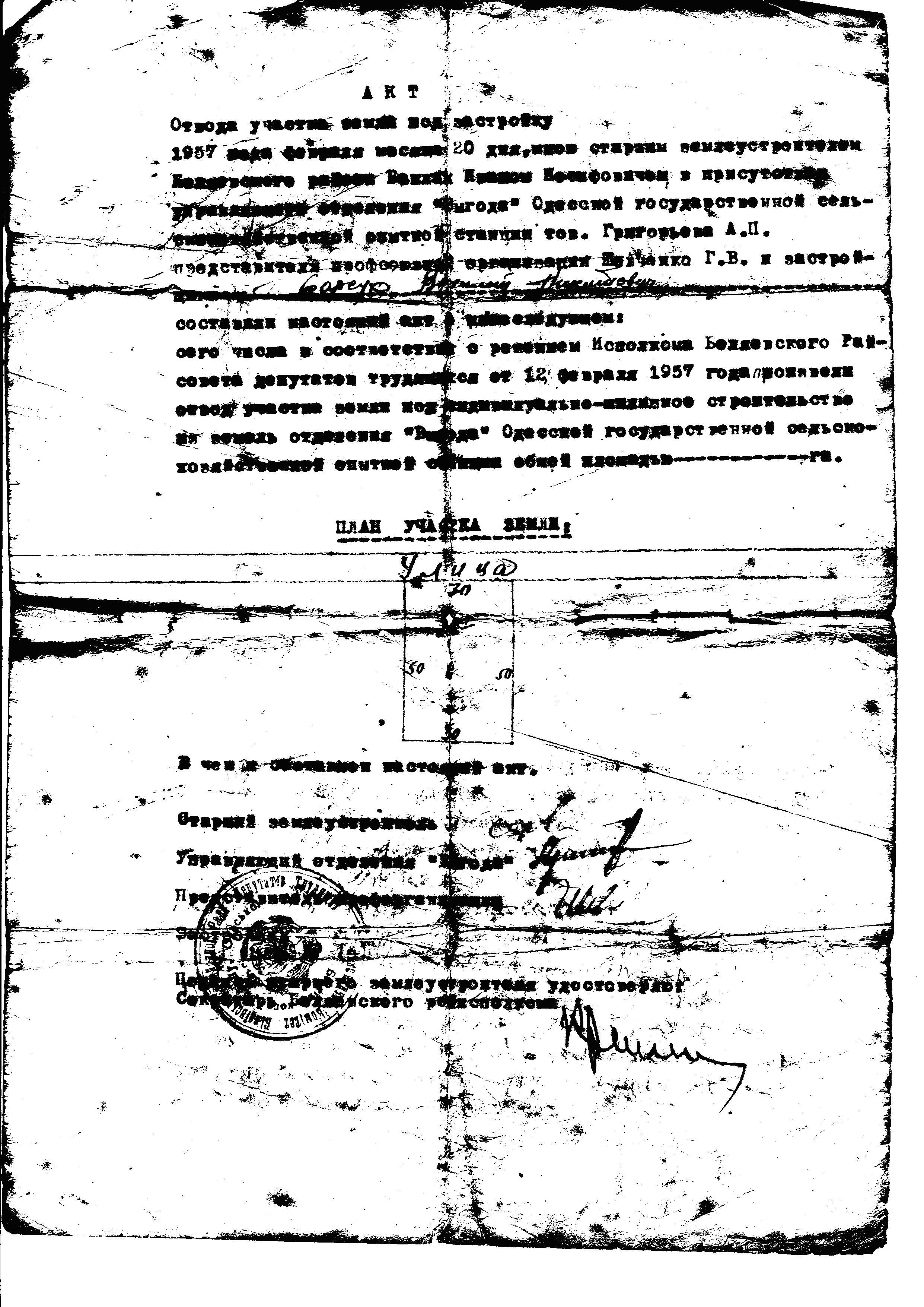у якому підтверджується «отвод участка земли под индивидуально-жилищное