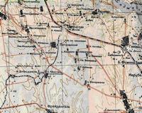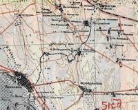 На мапі відображено, як пролягав шлях вузькоколійки в передвоєнні часи.